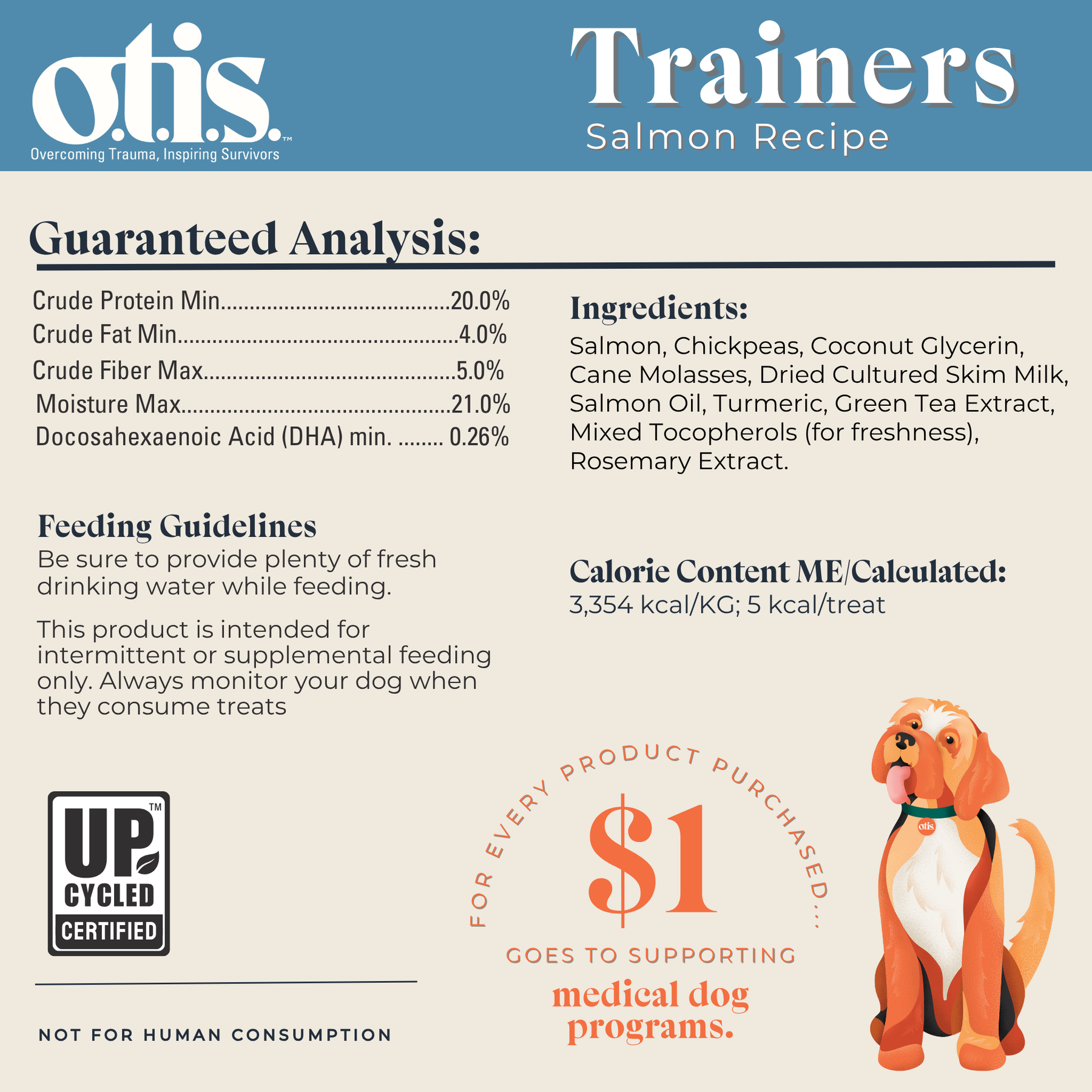 We're more than an amazing functional nutrition line for dogs...we're a mission! O.T.I.S. stands for Overcoming Trauma, Inspiring Survivors. For Every O.T.I.S. product purchased, $1.00 goes to support Medical Dog programs.